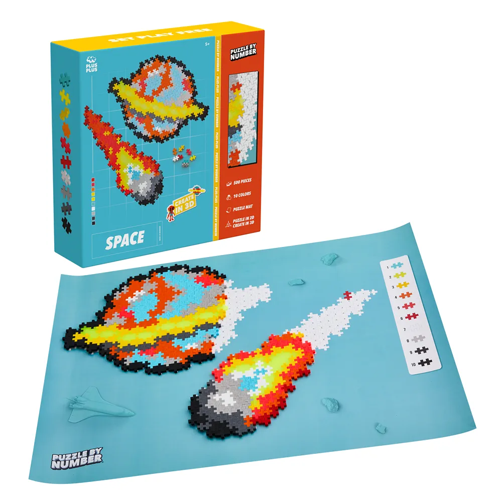 Férus d’astronomie ? Cette boîte de construction « Puzzle by Number » vous propose de reproduire un astéroïde et une planète qui ressemble à Saturne avec des Plus-Plus ! Un kit créatif pour prendre le temps de construire petit à petit grâce à un modèle et des numéros qui se rapportent à une couleur. Un moment de création récréatif et manuel qui calme les enfants et les parents. Plus qu’un jeu, la construction devient un objet de décoration, que les enfants peuvent accrocher fièrement dans leur chambre. Le kit contient 500 pièces CLASSIC (20 mm, 10 coloris), conseillé dès 5 ans.